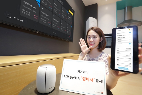 이미지 확대보기KT(회장 황창규)가 20일 이같은 AI와 빅데이터 기술을 활용한 대화 기반의 부동산 정보 서비스를 출시했다. 이를 위해 KT는 프롭테크 스타트업인 집펀드(대표 남성태)와 손잡고 음성으로 각종 부동산 정보를 조회할 수 있는 ‘집비서’ 서비스 기술개발을 완료했다. .