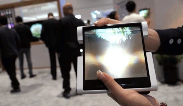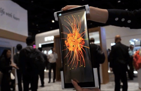 이미지 확대보기중국 BOE가 5인치였다가 잡아당기면 12.3인치까지 늘어나 태블릿으로 사용할 수 있는 롤러블 디스플레이를 선보였다.(사진=암디바이시즈닷넷)
