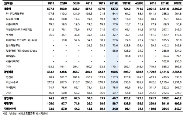 정호윤 한국투자증권 연구원은 "높은 밸류에이션의 근거로 평가받은 넥슨의 인수는 현재 매각이 잠정적으로 무산된 것으로 결론이 났다”며 ”상반기 최대 기대작의 흥행 성과로도 여전히 이익개선의 폭은 제한적”이라고 말했다.