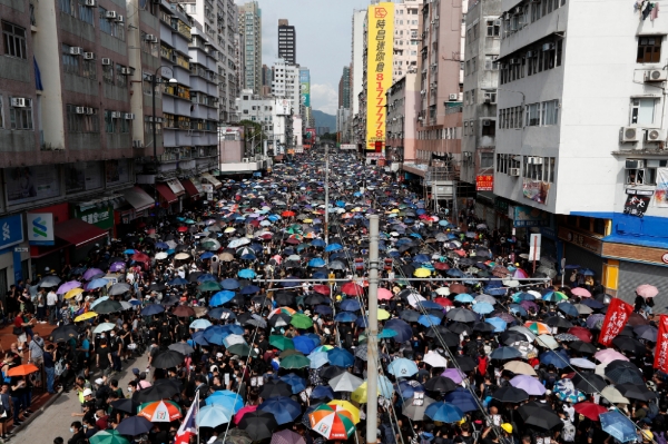 외신에 따르면, 이날 홍콩 시민 수만 명은 백색테러가 발생한 신계(新界) 지역 위안랑(元朗)역 인근 지역에 운집해 거리행진을 벌였다.
