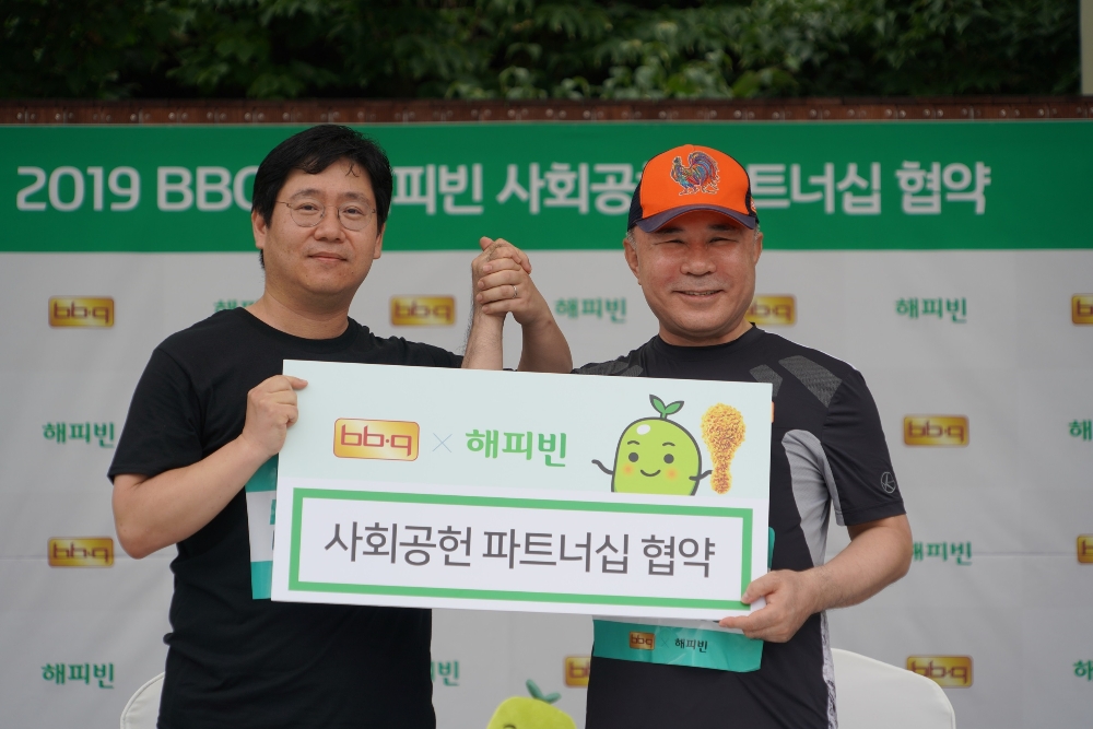 국내 최대 치킨 프랜차이즈 'BBQ(회장 윤홍근)'는 30일 서울 동작구 노들나루공원에서 '네이버 해피빈(대표 최인혁)'과 사회공헌 업무 협약을 맺었다고 밝혔다.