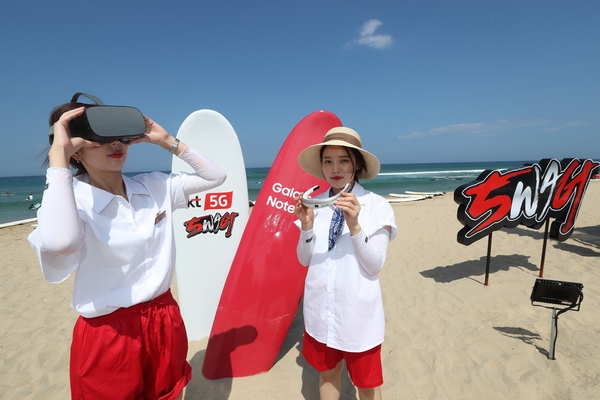 먼저 강원도 양양군 서피비치의 ‘KT 5G 비치 페스티벌SWAG’에서는 서핑과 제트서핑, 짚라인 등 액티비티를 즐기며 KT의 신개념 미디어 디바이스와 5G 효과를 체험할 수 있다. 제트서핑과 짚라인을 이용하는 고객은 ‘리얼360 넥밴드’와 ‘싱크뷰(Sync view)’ 기능을 활용, 바다, 해변의 360도 전경을 본인 1인칭 시점으로 볼 수 있다. 서핑을 하는 사람들은 멀티 카메라인 ‘포지션뷰(Position view)’를 통해 자신의 서핑 장면을 여러 각도에서 촬영해 볼 수 있다.