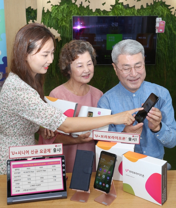 이미지 확대보기LG유플러스(부회장 하현회)가 중장년층을 겨냥한 신규 스마트폰과 전용 요금제를 출시한다고 15일 밝혔다. 중장년층 전용 스마트폰 ‘U+브라보라이프폰’과 ‘시니어 요금제 3종’이다.