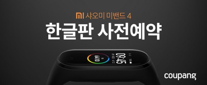 쿠팡은 오는 22일까지 샤오미 웨어러블 신제품 ‘스마트 미(Mi)밴드4 공식한글판’을 사전 예약한다고 20일 밝혔다. 사전 구매객 중 로켓와우회원은 23일 오전 7시 전 국내에서 가장 빨리 이번 신제품을 받아볼 수 있다. 사진=쿠팡