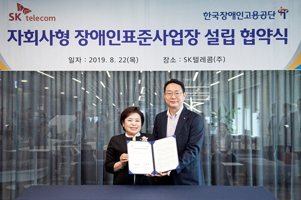 이미지 확대보기SK텔레콤은 한국장애인고용공단(이사장 조종란)과 ‘자회사형 장애인 표준사업장 설립 협약’을 22일 체결했다고 밝혔다.