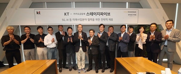 이날 진행된 협약식에는 이필재 KT 마케팅부문장(부사장), 박현진 KT 5G사업본부장(상무), 박지환 카카오인베스트먼트 대표, 서상원 스테이지파이브 대표 등 두회사 관계자들이 참석했다.