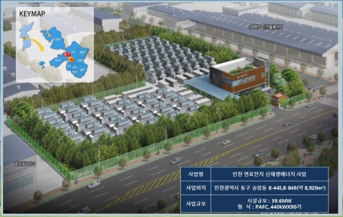 인천 동구 송림동 일반공업지역에 40메가와트(㎿) 규모의 수소연료전지발전소를 짓는 동구수소연료전지발전소 사업은 지난 2017년 6월 한수원을 중심으로 에너지기업 삼천리, 두산건설, 인천종합에너지 등 기업과 인천시·인천동구 등 지방자치단체가 참여해 사업추진 양해각서에 서명하면서 시작됐다.