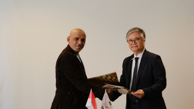 지난 8월 22일 인도네시아 자카르타에서 열린 '원격의료 서비스 사업 계약' 조인식에 참석한 전요셉 해원바이오테크 회장(오른쪽)과 인도네시아 라야나메딕그룹 대표가 협약서를 교환하고 있다. 사진=해원바이오테크이미지 확대보기