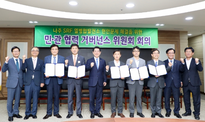 29일 지역난방공사에 따르면, 지난 26일 전남도청에서 열린 '나주 SRF 열병합발전소 현안문제 해결을 위한 민관협력 거버넌스 위원회(민관 거버넌스)' 제14차 회의에서 범시민대책위원회(범대위), 산업통상자원부, 전라남도, 나주시 등과 함께 '민관 거버넌스 위원회 기본합의서'를 체결했다.