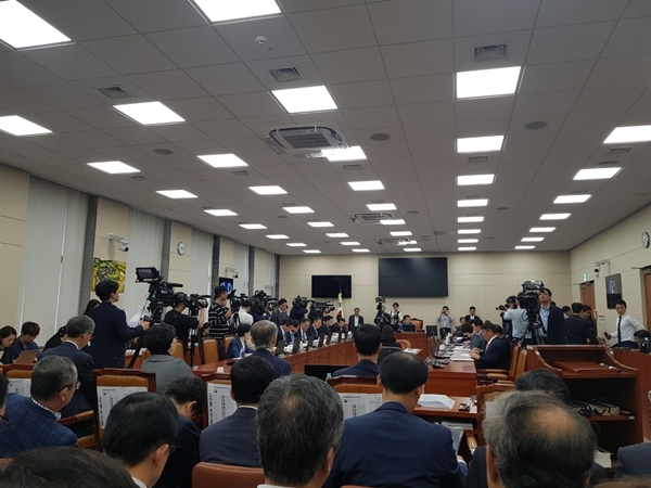 2일 서울 여의도 국회에서 열린 과방위 국정감사에서 김성태, 박성중 등 자유한국당 의원들은 조 장관 관련 특정 문장이나 단어가 지속적으로 포털사이트 네이버에 실시간 검색어 1위에 오르는 현상을 두고 ‘여론 조작’이라며 공격했다.