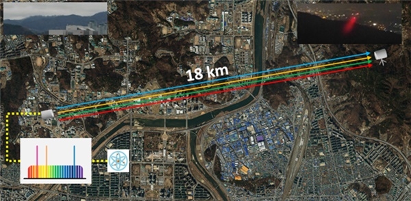 연구팀은 이러한 문제 해결을 위해 주파수 표준에 안정화된 펨토초 레이저 광빗에서 레이저들을 추출하고 그중 하나의 파장을 이용해 대기 환경변화를 실시간으로 추적했다. 이를 음향 광학 장치를 통해 대기 환경변화를 제어함으로써 레이저의 우수한 특성이 유지될 수 있도록 했다.