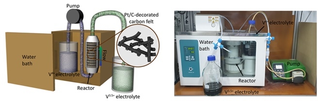 김 교수와 이 박사 공동연구팀은 유기 연료전지의 촉매 기술을 응용해 잔류물이 남지 않는 환원제인 포름산의 활성을 증대시켜 바나듐을 3.5가로 환원시키는 기술을 개발했다. 연구팀은 이 기술로 시간당 2리터(L)급 촉매 반응기를 개발했고 연속 공정을 통한 고순도의 3.5가 바나듐 전해액 생산에 성공했다.