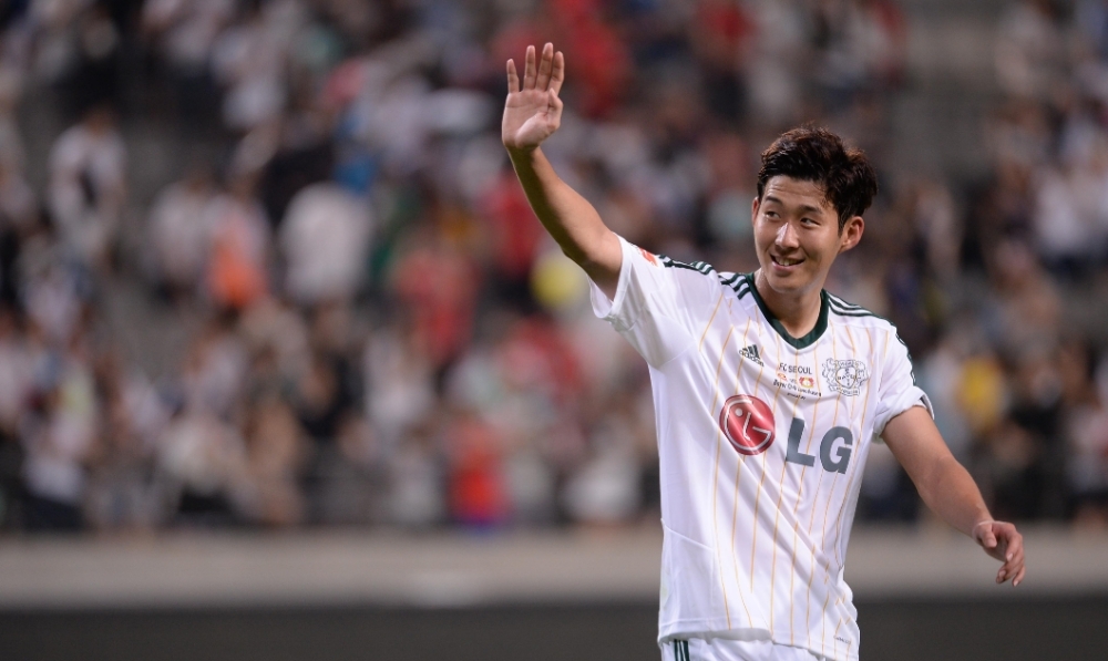 지난 2014년 7월 LG전자 초청으로 서울월드컵경기장에서 열린 바이엘 레버쿠젠과 FC서울간 친선경기에서 당시 레버쿠젠 소속 손흥민 선수가 관중들에게 손을 흔들고 있다. 사진=뉴시스