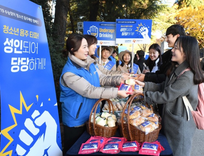 봉사단은 시험을 끝낸 학생과 학부모에게 슬로건이 부착된 핫팩과 간식을 증정하며 격려의 메시지와 함께 청소년 음주의 폐해를 알렸다. 특히 수험생들이 시험 스트레스를 날릴 수 있는 펀치게임 이벤트를 운영, 음주 호기심을 뿌리치며 성인이 되기 전까지 음주를 하지 않겠다는 다짐을 하도록 유도했다.