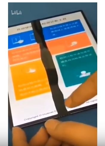 이미지 확대보기텐센트뉴스는 25일 중국판 유튜브 '비리비리'(Bilibili)에 디스플레이 한 가운데가 검게 변한 메이트X의 영상이 올라왔다고 전했다.