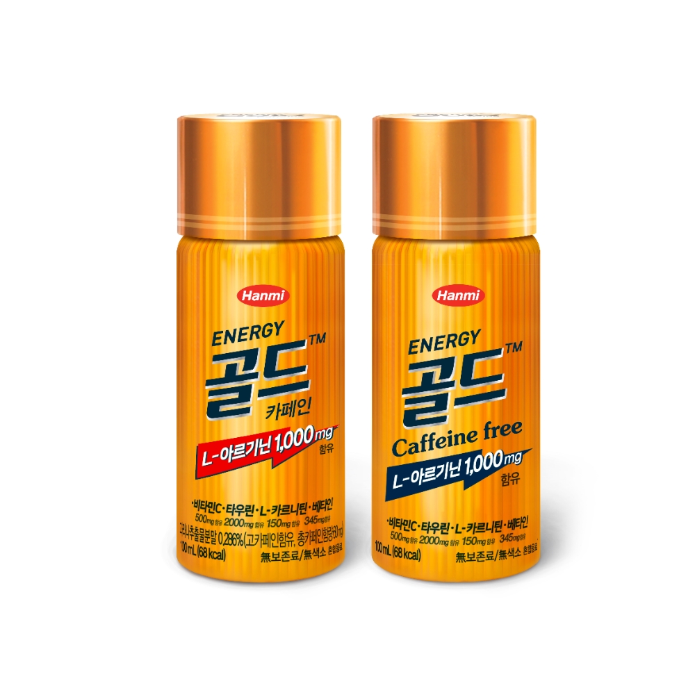 에너지골드는 카페인 함유 여부에 따라 2종으로 출시됐다. 혈액순환과 신진대사를 돕는 아르기닌 성분, 간기능 보호와 숙취 해소에 좋은 베타인, 활력에 도움을 주는 타우린과 비타민C, 비타민B군 등을 함유하고 있다.
