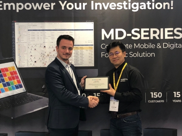 이미지 확대보기한컴지엠디는 최근 프랑스 파리에서 열린 국제 방위산업 전시회 '밀리폴 파리 2019'에 참가해 모바일 데이터 획득을 위한 '엠디 넥스트(MD-NEXT)'와 분석 소프트웨어 '엠디 레드(MD-RED)' 등 자체 모바일 포렌식 제품을 전시했다. 또한 전시회를 찾은 해외 바이어들과의 수출 상담을 통해 다수의 해외 업체들과 판매 계약을 체결했다.