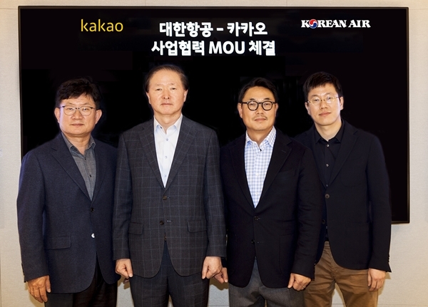 카카오는 5일 경기도 분당구에 위치한 카카오 판교오피스에서 대한항공과 업무 협약(MOU)을 체결하고, 사업 협력을 약속했다고 밝혔다.
