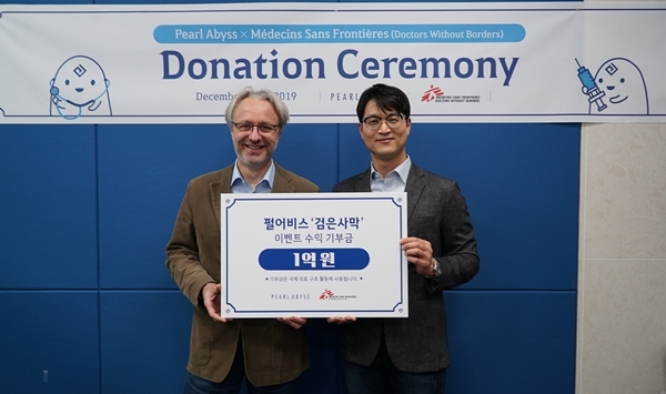 펄어비스는 26일 검은사막 이용자와 함께하는 '검은사막이 대신 전해드립니다' 이벤트를 통해 ‘국경없는 의사회’에 기부금 1억 원을 전달했다고 밝혔다.