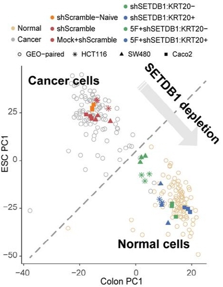 연구팀은 SETDB1을 억제함으로써 암세포를 효과적으로 정상 세포로 변환할 수 있음을 분자세포실험을 통해 증명했다. 대장암세포에서 SETDB1을 억제했을 때 세포가 분열을 중지하고 정상 대장 세포의 유전자 발현패턴을 회복하는 것을 확인했다.