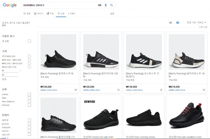 예를 들어, 운동화(running shoes)를 입력하면 인기 신제품들을 중심으로 쇼핑 정보가 펼쳐지는 방식이다.