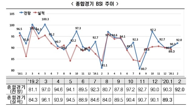 한편, 1월 실적치는 89.3으로 57개월 연속 기준선 아래에 머물렀다.
