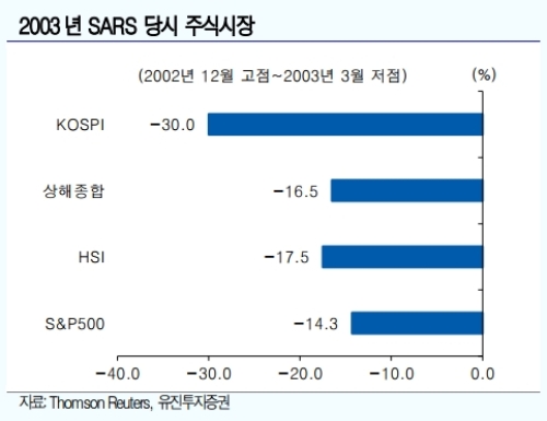 과거 사스 당시 코스피 최대하락폭 12.8%