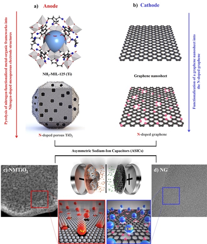 연구팀은 질소가 도핑된 3차원 형태의 열린 메조 다공성 금속산화물 나노 구조체와 질소 도핑된 그래핀을 결합해 소듐 이온 기반 시스템에서 고용량과 고출력의 에너지 저장장치를 개발했다.