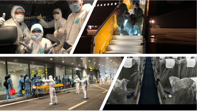 우한에서 돌아온 비행기는 신종 코로나 바이러스 감염 위험을 방지하기 위해 조종실, 승객실, 화물칸 등이 모두 소독되고 24시간 동안 일시적으로 운행을 중단한다. 이들은 모든 좌석이 비닐로 포장된 비행기 편을 타고 귀국했으며 승무원을 포함한 전원이 번 돈 국제공항 도착 후 별도의 리셉션을 통해 귀국절차를 진행했다. 베트남 정부는 각종 구호물품을 지원을 결정했다.