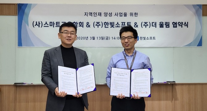 한빛소프트는 스마트교육협회· 더울림과 최근 지역 인재 양성사업을 위한 전략적 제휴 업무협약(MOU)을 체결했다고 16일 밝혔다.
