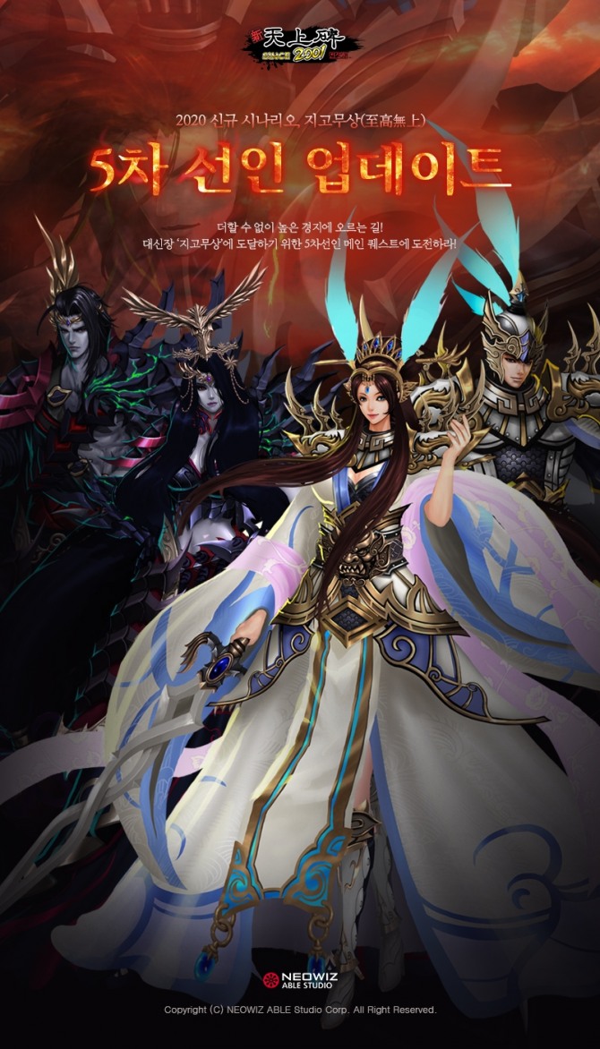 이미지 확대보기네오위즈에이블스튜디오(대표 김인권)가 서비스하는 온라인 MMORPG ‘신 천상비’가 5차선인 캐릭터로 변신할 수 있는 퀘스트 업데이트를 진행한다고 27일 밝혔다.
