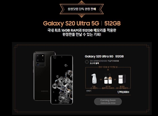이미지 확대보기삼성전자는 1일 자사 온라인몰 '삼성닷컴'을 통해 한정판 갤럭시S20 울트라를 오는 6일 오전 9시부터 판매한다고 밝혔다.