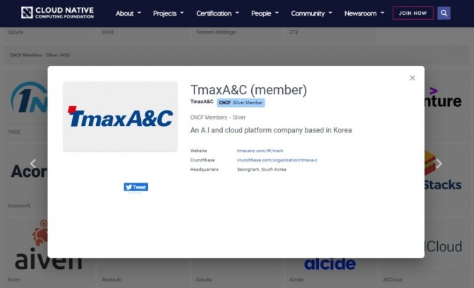 인공지능(AI) 및 클라우드 플랫폼∙서비스 전문기업 티맥스A&C(대표 박학래, 한상욱)는 다양한 오픈소스 생태계 구축에 기여하는 한편 CNCF에 가입하여 클라우드 네이티브 환경을 선도하겠다고 6일 밝혔다.