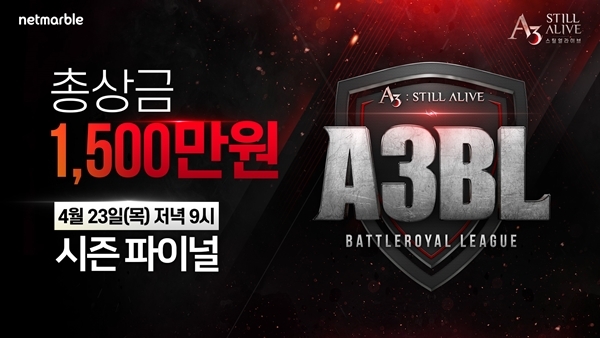 이날 오후 9시에는 배틀로얄 프리시즌 리그 결승전이 열린다. 총 상금 1500만 원 규모의 이번 대회는 이용자들을 대상으로 온라인에서 진행되며 게임 내 A3 TV와 아프리카TV A3 공식 방송국 등에서 동시 중계 예정이다. ‘A3: 스틸얼라이브’는 지난 20일 문화체육관광부가 e스포츠 시범종목으로 선정됐다.