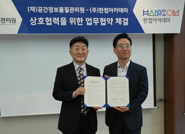 이미지 확대보기한컴아카데미는 19일 공간정보품질관리원과 경기도 성남시 한컴타워에서 드론·공간정보 산업 활성화를 위한 업무협약을 체결했다고 밝혔다. 협약식에는 김현수 한컴아카데미 대표와 윤경철 공간정보품질관리원장을 비롯한 주요 관계자들이 참석했다.