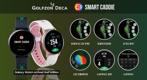 이미지 확대보기스마트캐디는 골프존데카가 삼성전자와 손잡고 2016년 선보인 스마트워치 전용 골프 애플리케이션이다. 그 해 9월 독일 베를린에서 열린 삼성전자 스마트워치 ‘기어S3’ 언팩 행사장에서 첫 선을 보인데 이어, 2018년 9월, 올해 2월 업그레이드 된 제품을 차례대로 선보였다.