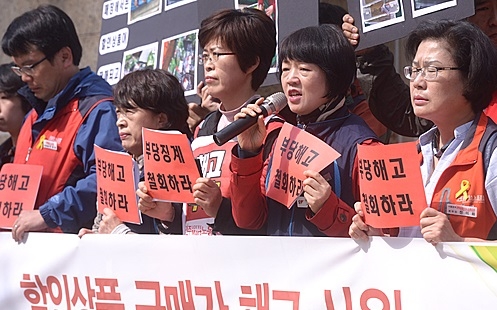 실제로 지난달 말 폐점한 롯데마트 양주점 직원들은 인근에 있는 의정부점이 아닌 서울역점·김포 한강신도시점 등으로 발령받았다. 이들은 대중교통 이용 때 편도 최대 2시간 반가량 걸리는 곳에 배치되며 간접적인 퇴직 압박을 받은 셈이다.
