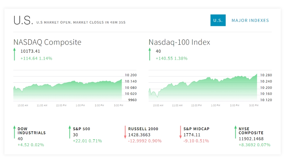 나스닥 NASDAQ Composite 10173.41 +114.64 1.14%