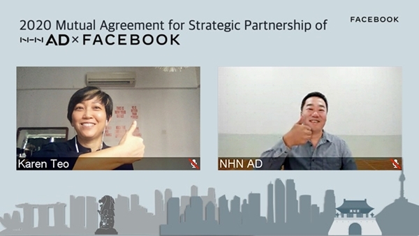 NHN AD와 페이스북과 협약식은 코로나19 확산 방지를 위해 화상 회의 기반의 온라인 행사로 진행됐다.