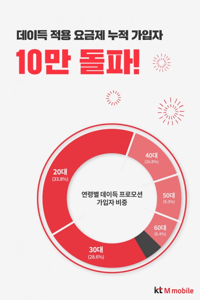 전승배 KT 엠모바일 사업운영본부장은 "이번 데이득 프로모션을 계기로 MVNO 업계에서도 고용량 데이터 요금제에 대한 고객 요구를 확인하는 계기가 됐다"며 "향후 통신 산업 및 소비자 트렌드에 발 빠르게 대응, 업계 최고 수준의 요금제 및 프로모션을 제공해 나갈 것"이라고 말했다