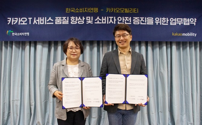 이미지 확대보기카카오모빌리티(대표 류긍선)와 한국소비자연맹(회장 강정화)이 모빌리티 서비스 사용자 경험을 강화하기 위해 ‘카카오 T 서비스 품질 향상 및 소비자 안전 증진을 위한 업무 협약’을 체결했다고 16일 밝혔다.