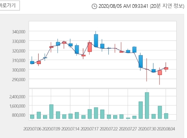 이미지 확대보기5일 한국거래소에 따르면 셀트리온 주가는 이날 오전 9시 21분 현재 전거래일 대비 2.48% 오른 30만9500원에 거래되고 있다.