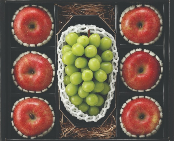 이미지 확대보기이 회사는 샤인머스켓 추석 선물세트를 총 5종으로 준비했다고 24일 밝혔다. 이번에 내놓은 품목은 ▲샤인&제주 왕망고 세트(15만 8000원, 1000세트) ▲샤인&애플 혼합세트(10만 9000원, 5000세트) ▲샤인&애플망고 세트(9만 9800원, 5000세트) ▲샤인&멜론 세트(가격 미정, 5000세트) ▲샤인머스켓 세트(가격 미정, 6000세트) 등 총 5개다.