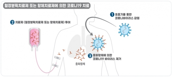 혈장치료는 이런 혈장을 이용한 치료법이다. 코로나19 완치자에게는 코로나 바이러스를 무력화 하는 항체가 생긴다. 혈장치료는 이 항체가 들어있는 완치자의 혈액을 채취해 다른 코로나19 환자에게 수혈하는 치료 방식이다. 즉 코로나19 환자는 수혈을 받은 완치자의 항체로 이 감염병 치료에 도움을 받게 된다.