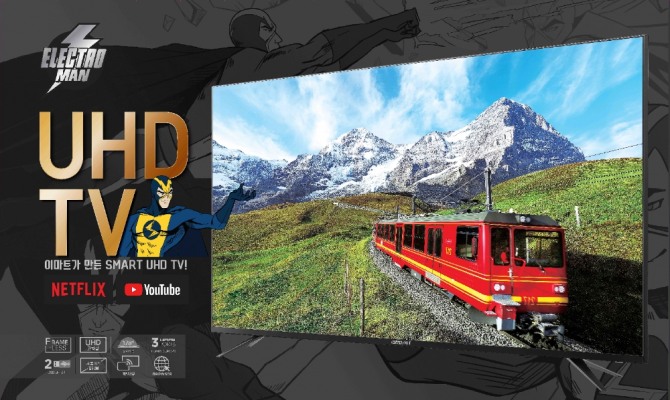 이마트는 오는 9월 3일 ‘일렉트로맨 50인치 UHD TV’를 새롭게 선보인다. 일렉트로맨 50인치 UHD TV는 이마트가 선보이는 일렉트로맨 TV의 여섯 번째 모델로, 3000대 한정 수량으로 준비됐다. 유사 기능을 지닌 기존 상품 대비 40% 이상 저렴한 가격인 1대당 37만 9000원에 판매한다.