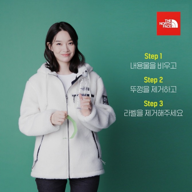 노스페이스는 국내 수거 페트병의 낮은 재활용률을 개선하는 데 조금이나마 기여하고자 지난해부터 다양한 캠페인을 전개해왔다. 신민아와 소지섭 등 브랜드 홍보대사들의 캠페인 동영상을 통해 ‘올바른 페트병 분리 배출법’을 안내하고, 폐페트병 리사이클링 소재를 사용한 플리스 재킷 등을 출시했다.