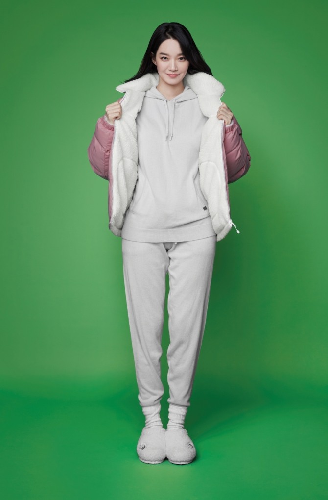노스페이스 홍보대사 신민아가 신제품 '캐시미어 컬렉션'을 착용한 모습. 사진=영원아웃도어