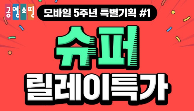 공영쇼핑은 모바일 쇼핑몰 오픈 5주년을 기념해 12일부터 31일까지 '슈퍼 릴레이 특가' 이벤트를 진행한다고 밝혔다.