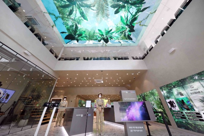 서울 강남구 강남대로 426번지에 위치한 이 공간은 지하 1층부터 지상 6층까지 7개층, 420평(1388㎡) 규모다. 도심 빌딩 숲 한복판에서 만나는 자연을 콘셉트로 삼아 실제 살아있는 식물과 대형 미디어월을 이용한 가상의 숲으로 가득 채워진 '리얼플랜트' 디자인이 특징이다.