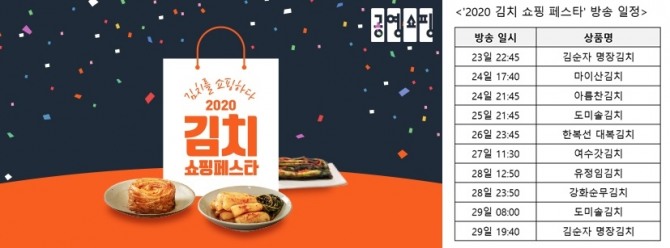 공영쇼핑은 23일부터 29일까지 한 주간 '2020 김치 쇼핑 페스타'를 열고 10시간 동안 지역별, 재료별 다양한 김치를 선보인다.